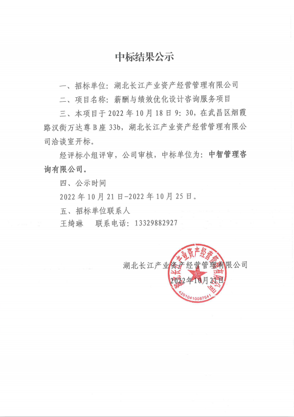 湖北九游会老哥吧俱乐部资产经营管理有限公司薪酬与绩效优化设计咨询服务项目中标结果公示