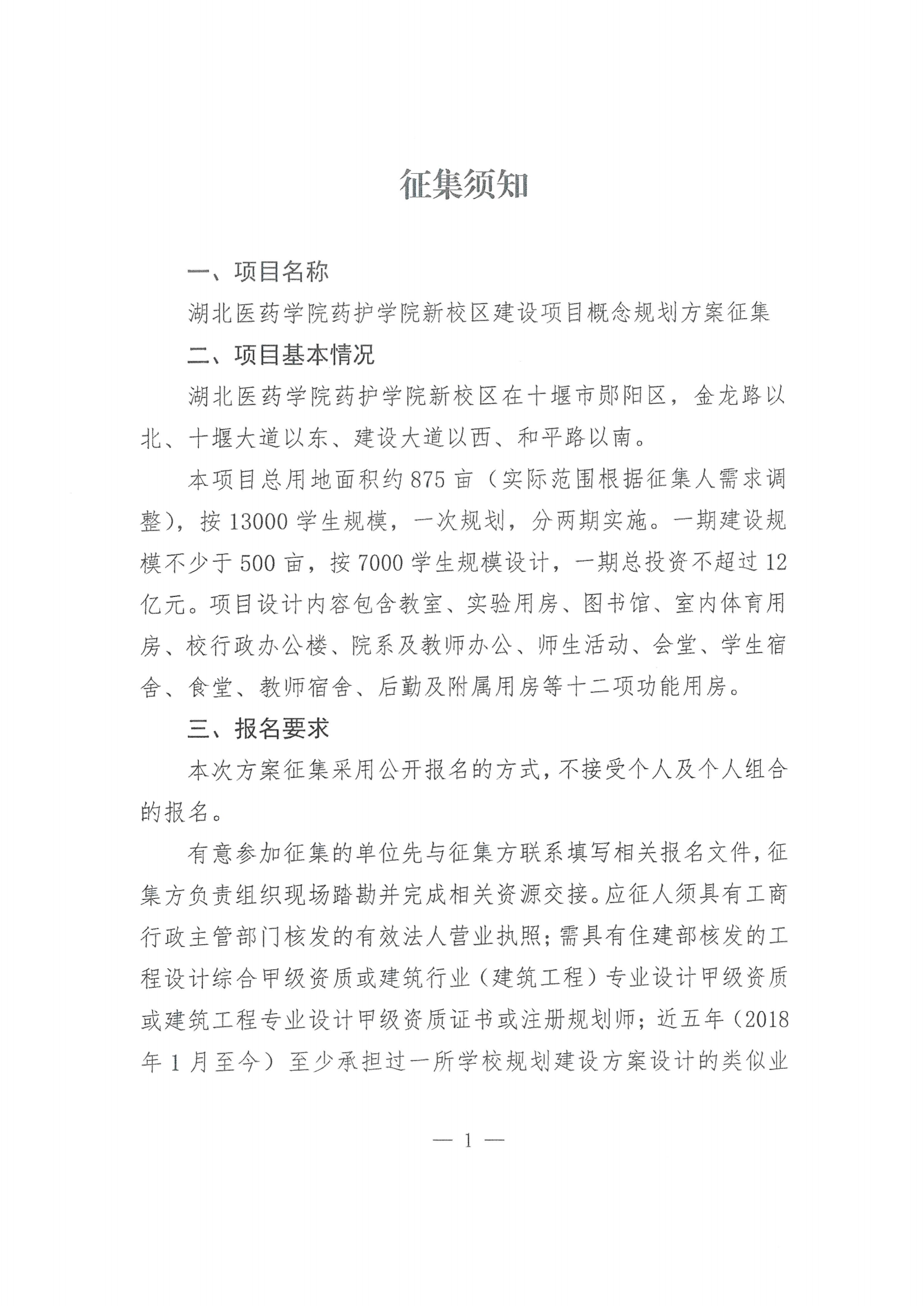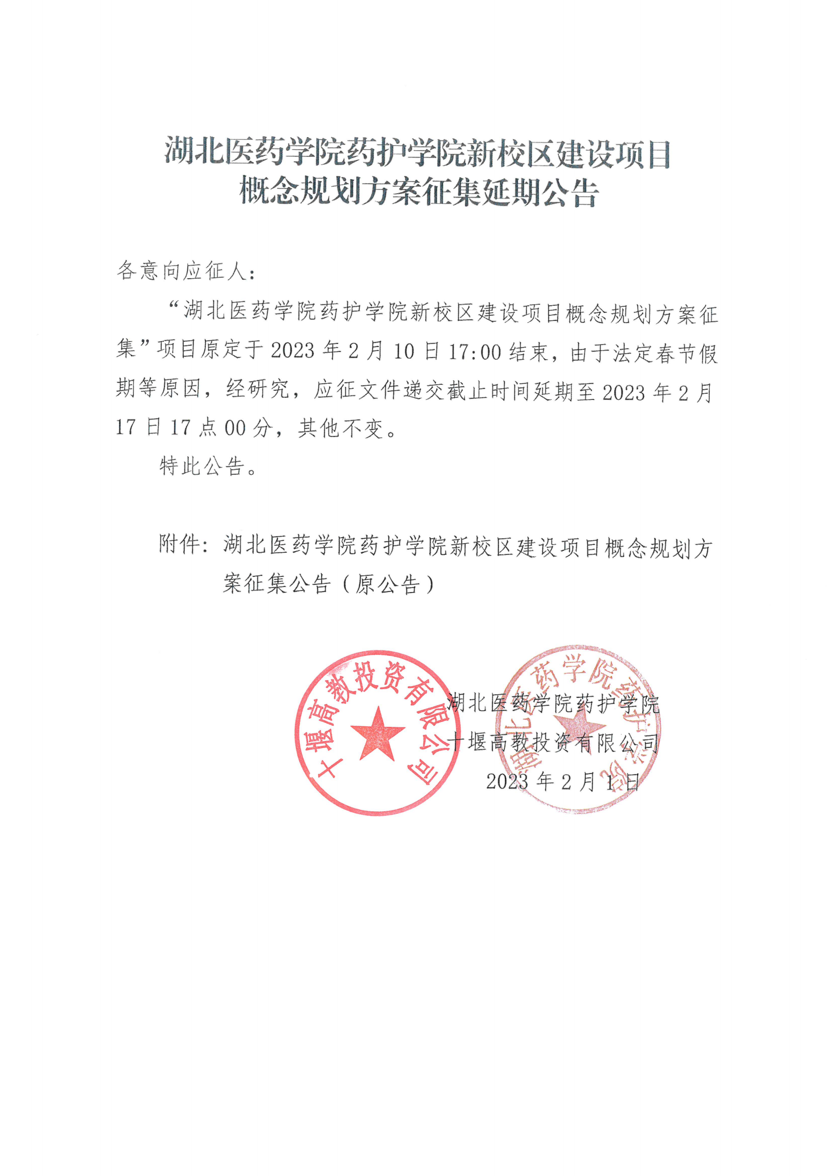 湖北医药学院药护学院新校区建设项目概念规划方案征集延期公告