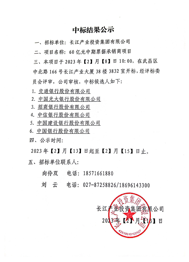 九游会老哥吧俱乐部投资集团有限公司60亿中期票据承销商中标结果公示