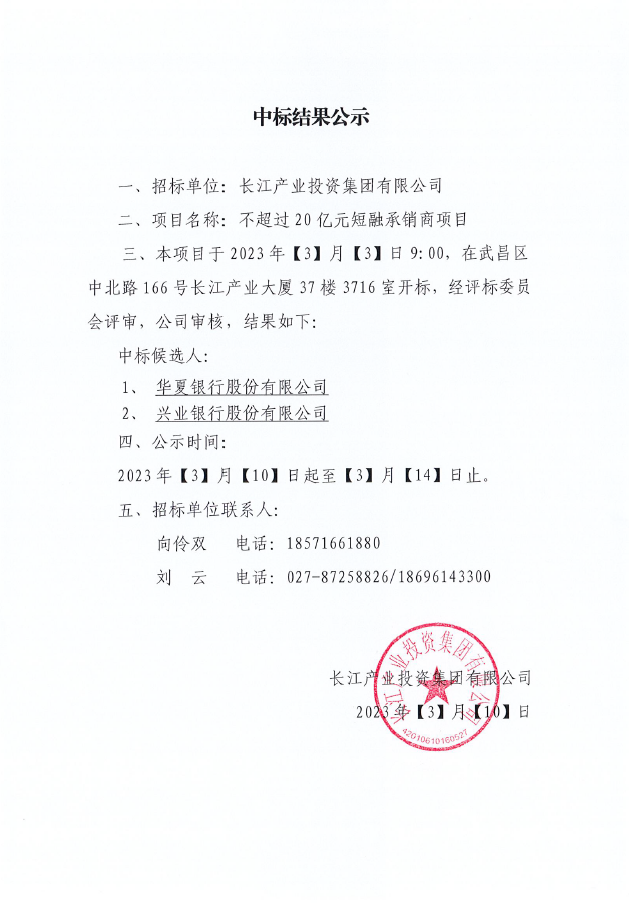 九游会老哥吧俱乐部投资集团有限公司不超过20亿元短融承销商项目中标结果公示