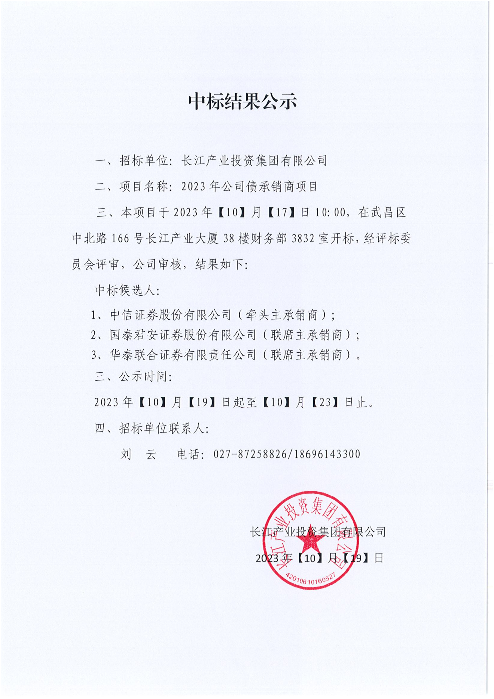 九游会老哥吧俱乐部投资集团有限公司2023年公司债承销商中标公告